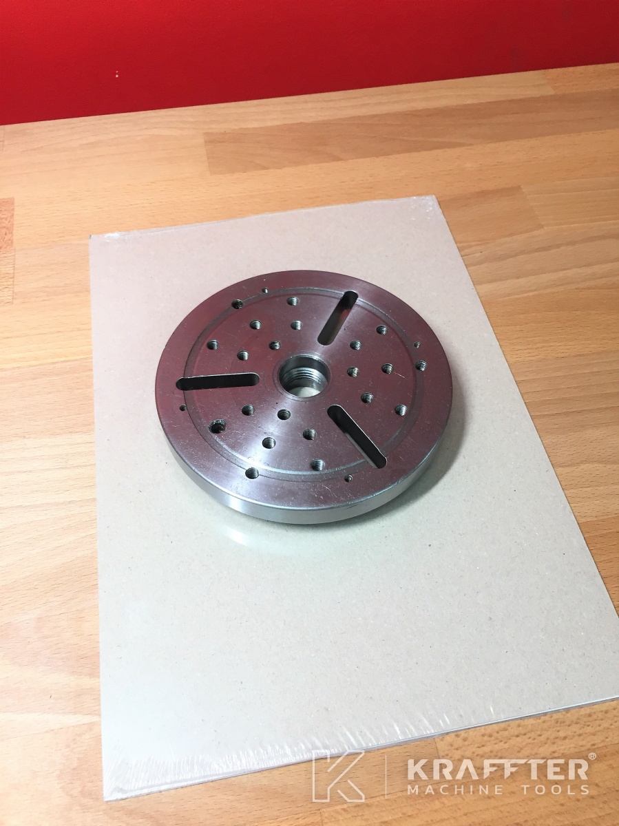 - 1 placa Ø138 [mm] con 3 ranuras radiales en T de 7 [mm] y 21 orificios roscados M6